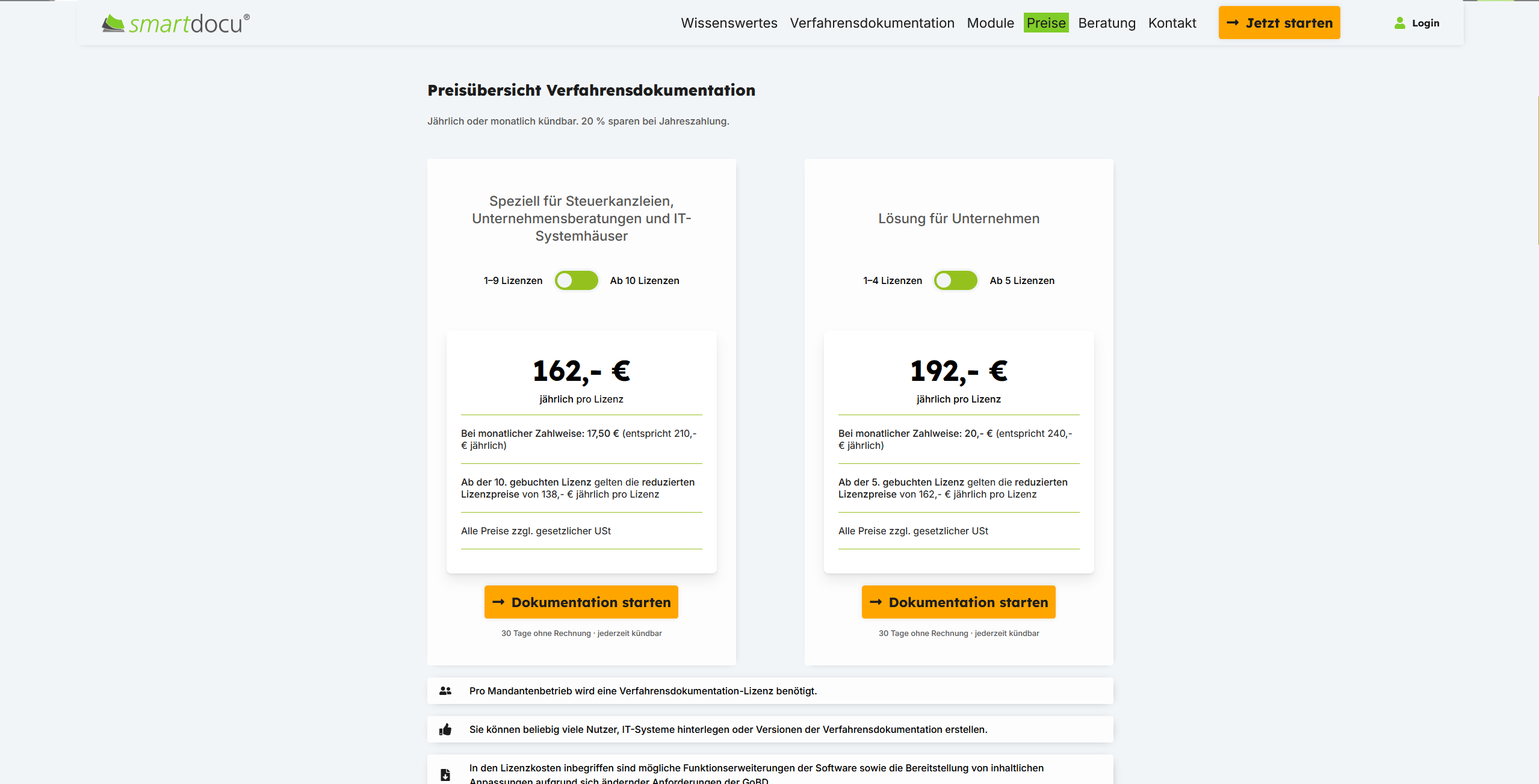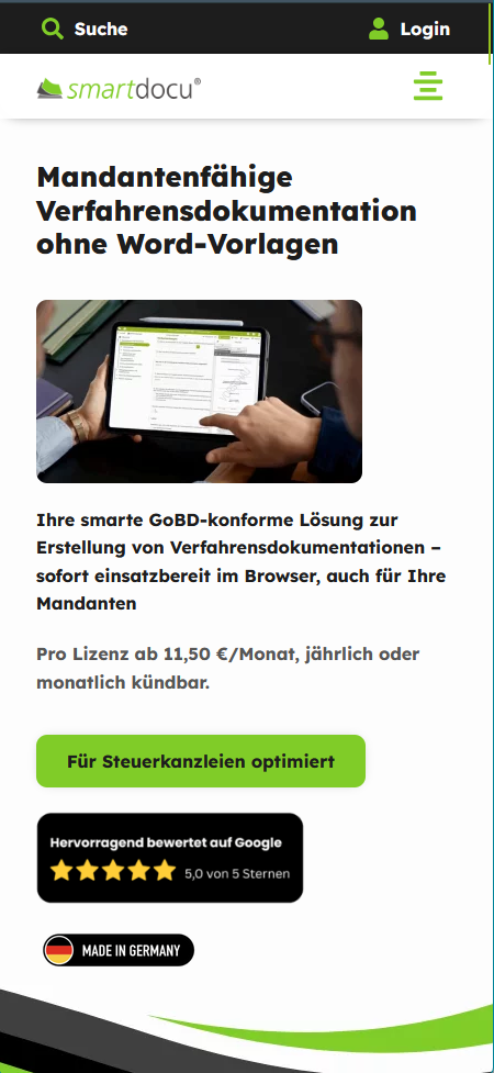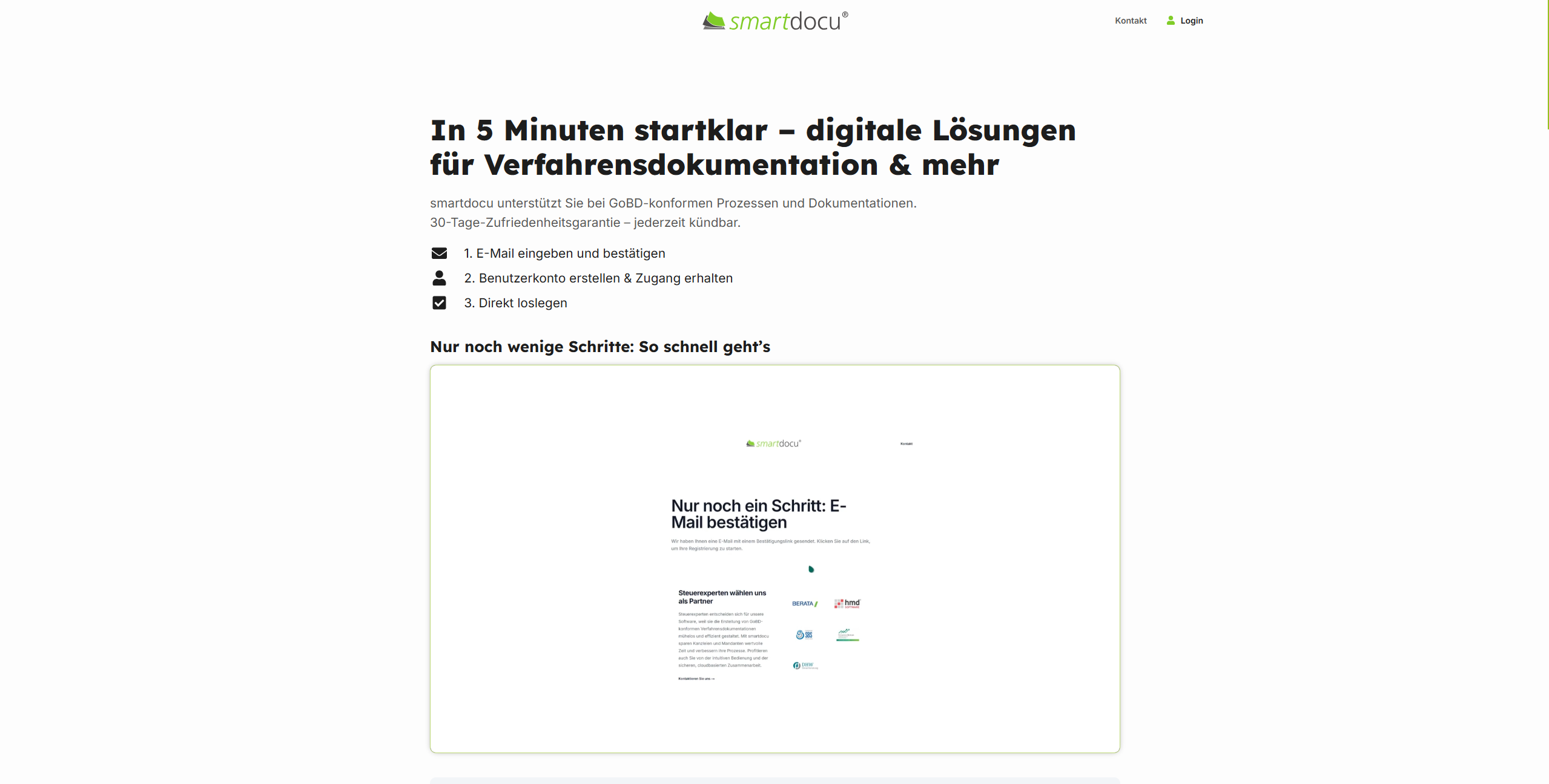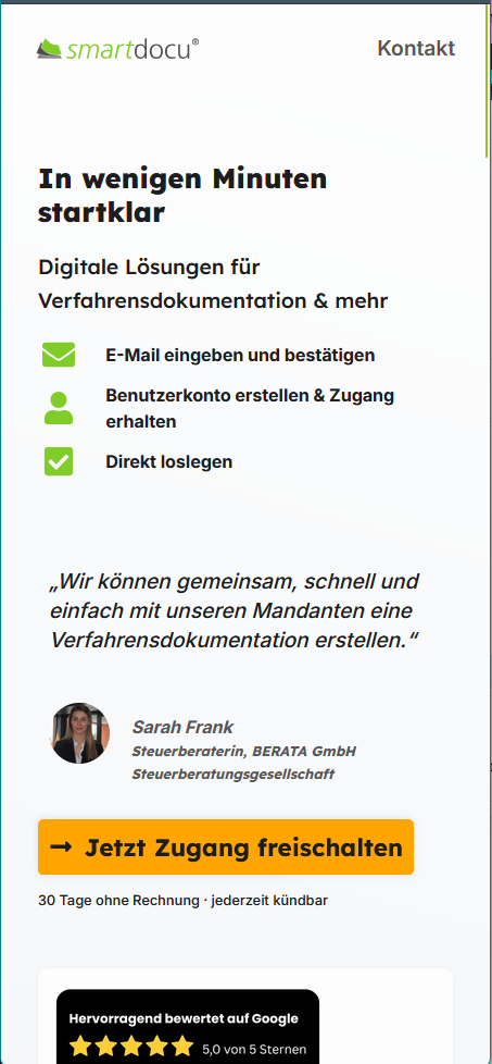 Zudem hatte smartdocu bislang nur eine umfangreiche, aber schwer zugängliche PDF-Anleitung für ihre Software. Um den Nutzern eine benutzerfreundlichere und SEO-optimierte Informationsquelle zu bieten, habe ich einen leicht navigierbaren Hilfebereich entwickelt, der die Funktionen der Software übersichtlich erklärt.